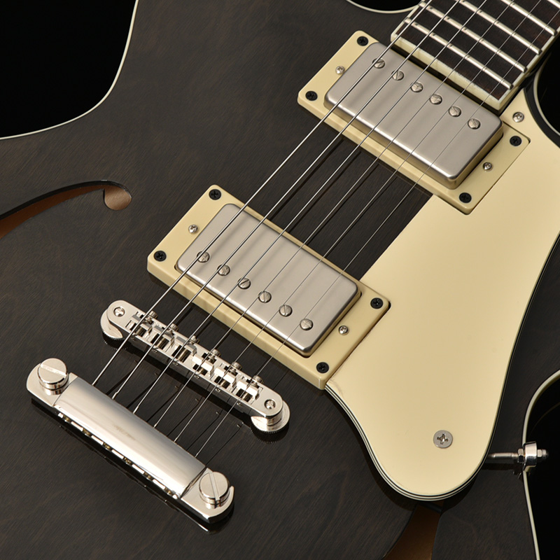 アルニコ2マグネットを採用したSeventySevenオリジナルピックアップ、 「SeventySeven AL2」を搭載。クリーントーンではきらびやかな鈴鳴り感を表現しつつも耳に痛くない暖かさを併せ持ち、ドライブをかけると歯切れの良いエッジの効いたクランチサウンドを出力します。プレイヤーの創造力を膨らませて豊かな演奏表現を生み出します。