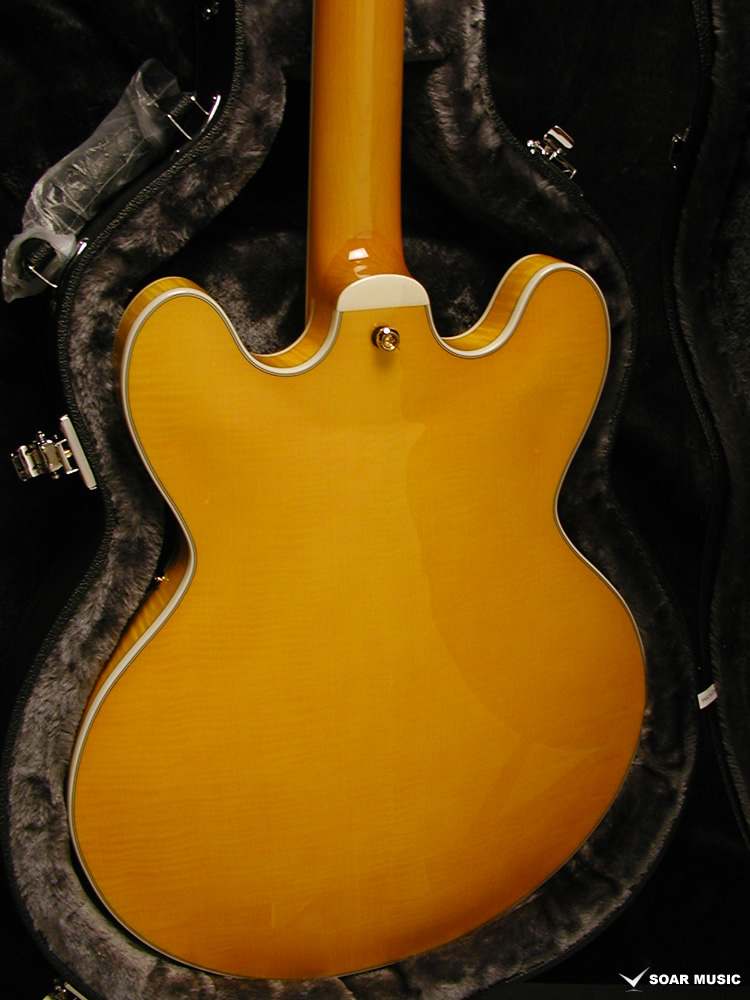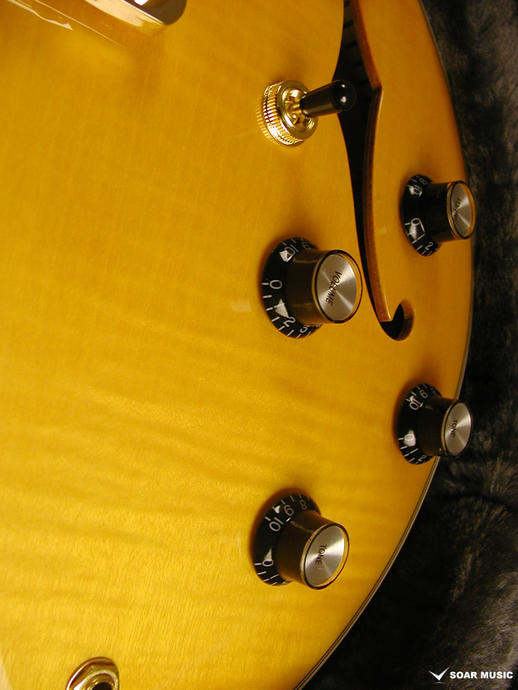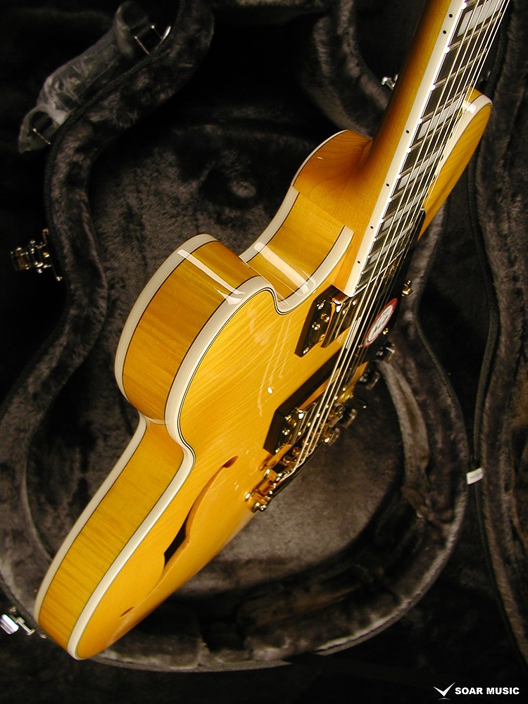 ボディトップ、サイド、バックともに杢の出たフレイムメイプルを使用しています。メイプルネックとのマッチングにより、適度に硬質で粒が立ちコードワークでも綺麗に音が分離するサウンドを出力します。