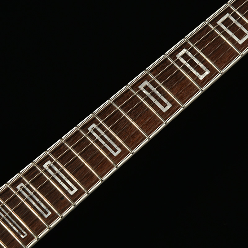 ポジションマークはすっきりした印象の特別デザインを採用。彫刻機によりエボニー指板を加工し、一つずつ手作業でポジションマークが埋め込まれます。指板やボディ外周のバインディングとも調和し、個性のあるデザインへと仕上がりました。