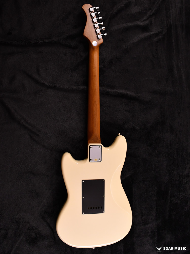 ネックにローステッドメイプルを使用したSSHレイアウトのモデル。 ピックガードやノブにミントカラーのパーツを採用し、オールドギターの風格を漂わせるルックスに仕上げました。 SSHピックアップレイアウトで粒立ちの整ったクリーントーンから、パワーあるオーバードライブサウンドまでジャンルを問わず幅広く音作りをすることができます。更にコイルタップスイッチを搭載し、リアハムはシングルピックアップの様なきらびやかなサウンドを出力します。