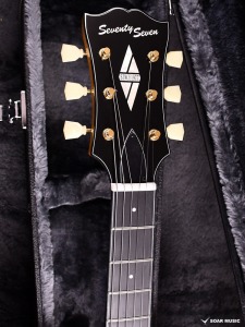 ボディにはアコースティックギターを思わせるヘリンボーンのパーフリングを装飾。ヘッドにはSeventy Sevenのトレードマークである”77″を模ったインレイが施されています。