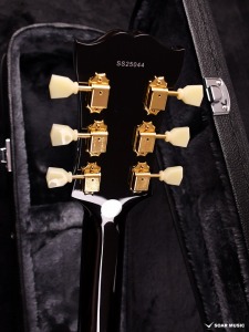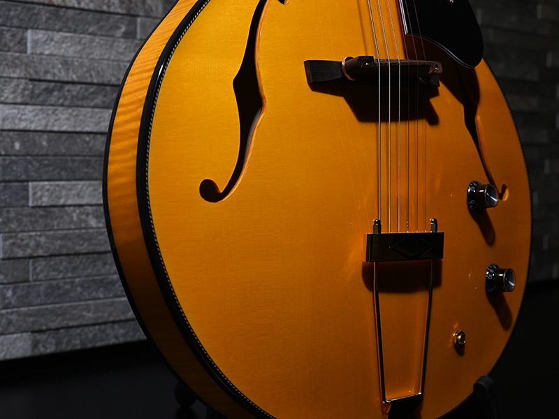 フルアコースティック仕様にともない、アーチトップに合わせて作られたオバンコール材のブリッジを装備。金属製のものに比べて、深みのある温かいサウンドが特徴です。