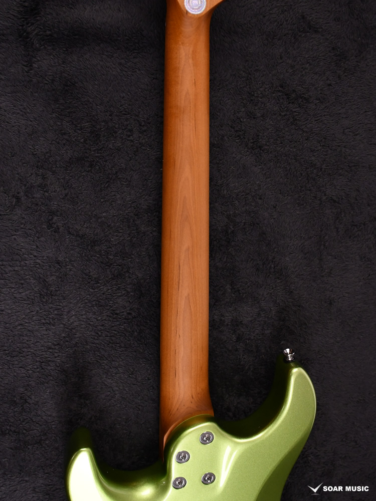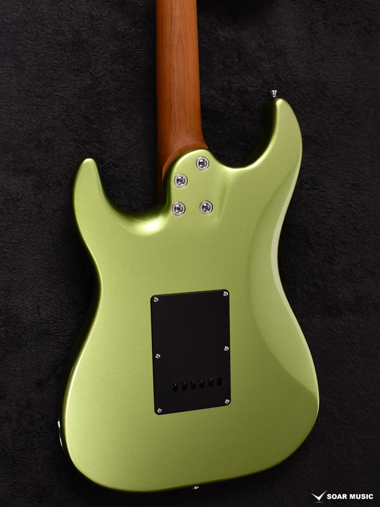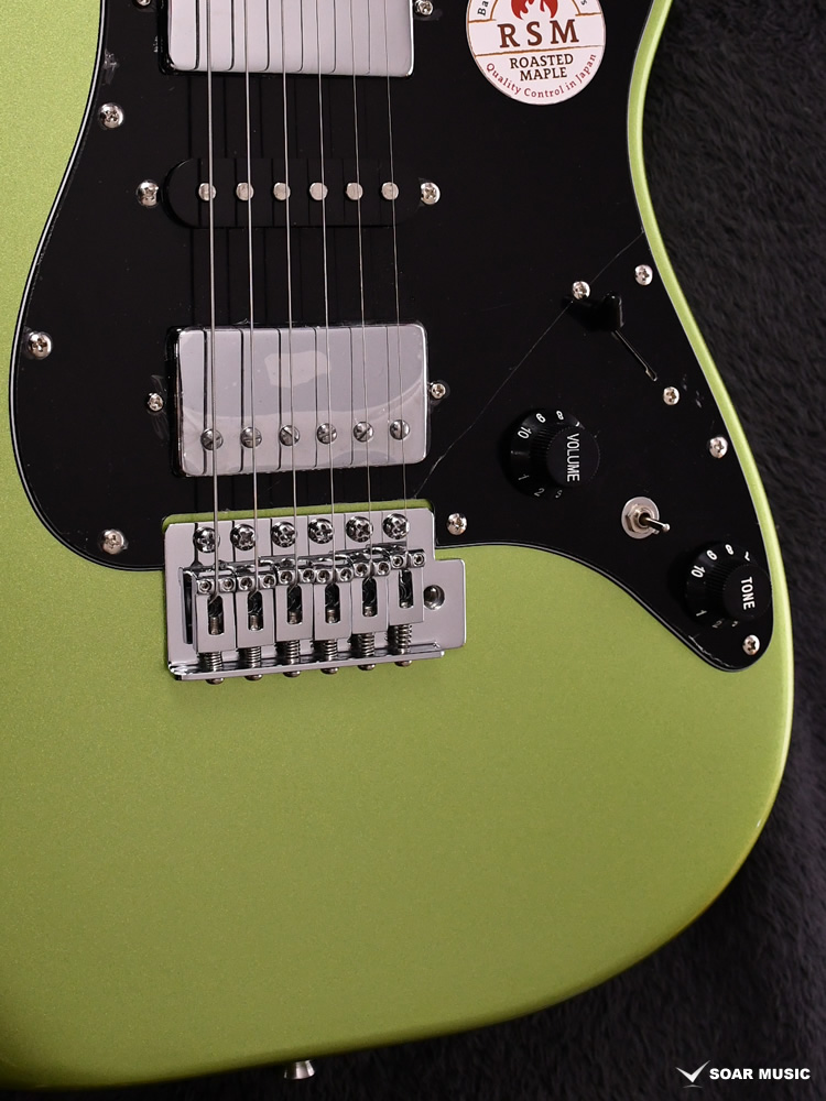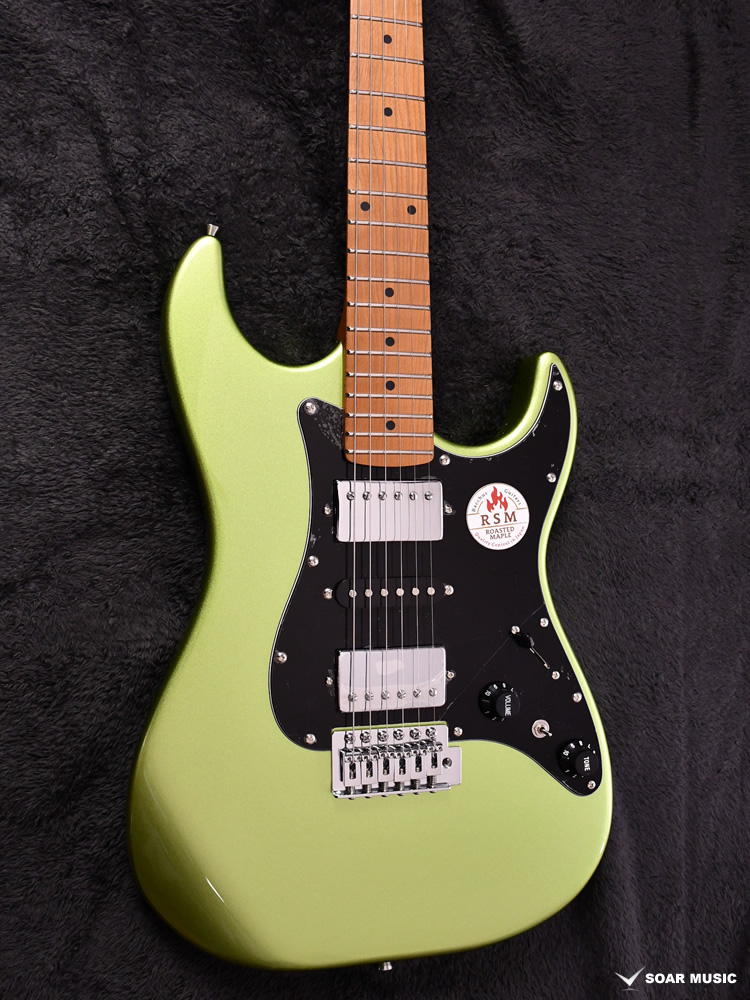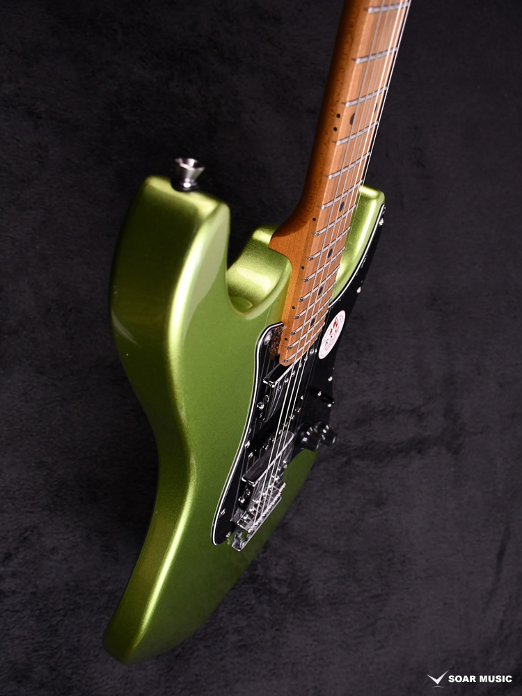 ローステッドメイプルとはメイプルを高温で加熱処理して材の中の水分や油分を揮発させることにより木材を経年変化した状態に人工的に近づけた材のことです。経年変化が進んだ材は歪みやねじれが生じにくくなります。ネックに使用されるとその効果は安定性だけでなくサウンドにも及び、豊かな生鳴りと経年変化したビンテージのようなこなれたトーンを生み出します。一般的に高級機種などで用いられる材ですが、手に取りやすい価格帯に落とし込むことに成功しました。
