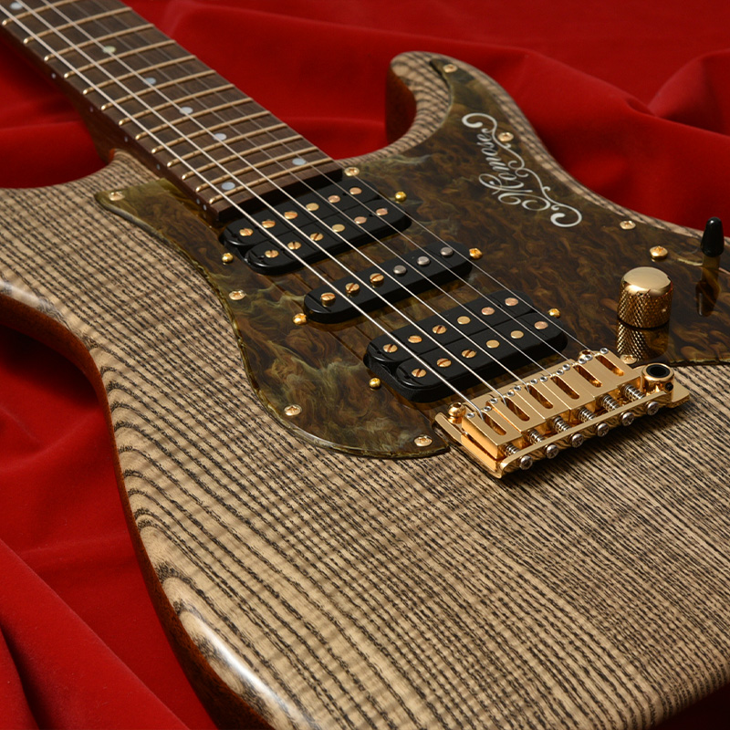 いまや良質な材料は希少となりつつあるインディアンローズウッドを贅沢にネック・指板と使用しております。 非常に硬質な木材となっており、ネック・指板共に使用することで独特の粘りがあるローミッドを持ったサウンドが唯一無二の世界を生み出します。