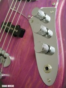 通常の2ピックアップタイプのベースはフロントピックアップ、 リアのピックアップをパラレル(並列)で配線してますが、 WOOD LINE ASH はターボスイッチを搭載しており、 トーンノブを引っ張るとフロント/リアピックアップを連動させたシリーズ(直列)回路に 切り替わり、出力がアップします。 ターボON (シリーズ)時はフロント/リアピックアップが 連動し、ハムバッキングタイプの ピックアップになり、フロントピックアップの ボリュームノブで音量調節が可能になります。