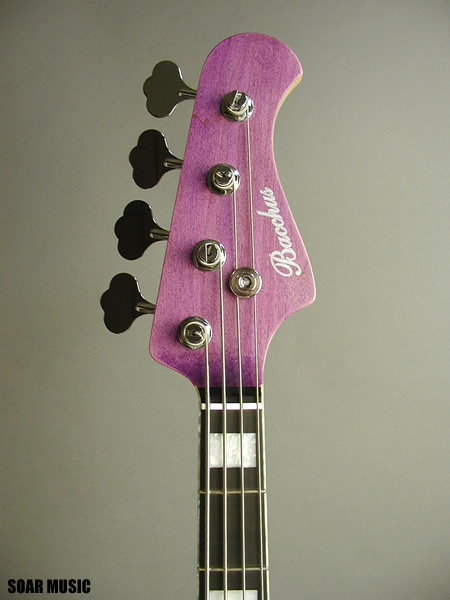 人気パッシブモデルのひとつ、WOOD LINE ASH 4 のレアカラー パープルオイルです。 材の特性を最大限に活かすパッシブピックアップ仕様で、 楽器本来の鳴りをストレートに表現しながらも、プレイヤーの意図するニュアンスを余すことなく再現。 ライトアッシュボディーに施された極薄のラッカー塗装が美しい木目を一層鮮やかに際立たせています。 ネックサイドに施されたインレイとも相まり、 その美しさは溜息が出るほど。 ペグには高い安定性が定評のGOTOH社製のペグを使用。 ブリッジ部にはバッカスオリジナルの Bacchus DB を搭載しており、弦振動をストレートに 伝え、安定したテンションバランスを持ち、細かいセッティングも可能です。 Bacchusというブランドの品質の高さを改めて感じさせてくれる、 国産ハンドメイドの誇り高い逸品です。