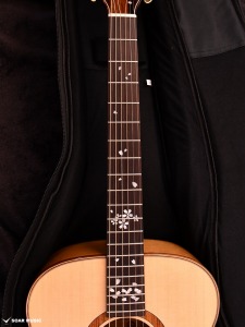 これほど美しく装飾できると思っていなかったため、完成品に驚きました。音の特徴としては、やはり中域の甘さと上品な響きです。出荷時にエリクサーフォスファーブロンズ弦が張ってありますが、この弦が高音の綺羅びやかさを足しており、とても相性が良いように感じます。 普段使っているギターではフォスファーブロンズは少し喧しい印象がありますが、温かい音がするこのギターにとっては、高音が補完されることでより音のランクが上がっているように感じます。