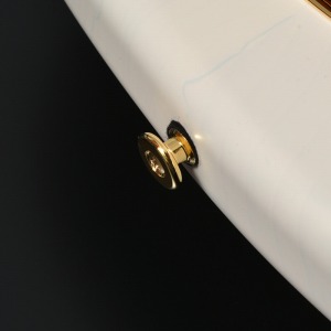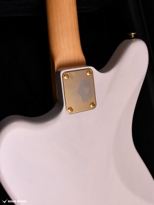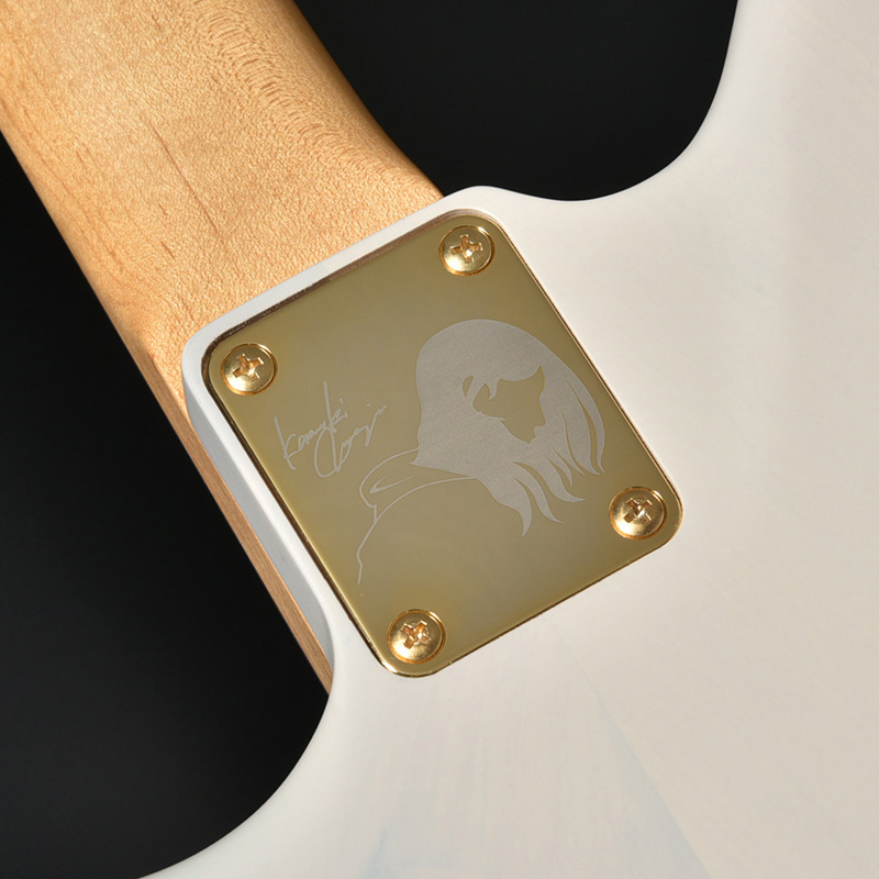 磯貝のアイコンとサインがレーザーによって彫られたオリジナル仕様のネックプレートでジョイント。トラディショナルなサウンド特性を損なわない為にオーソドックスなプレートジョイントを採用しながらも、プレート部を落とし込み加工しています。これにより、ジョイント近くのハイポジションでもプレートに手が引っ掛からなくなり、演奏性の向上を実現しています。