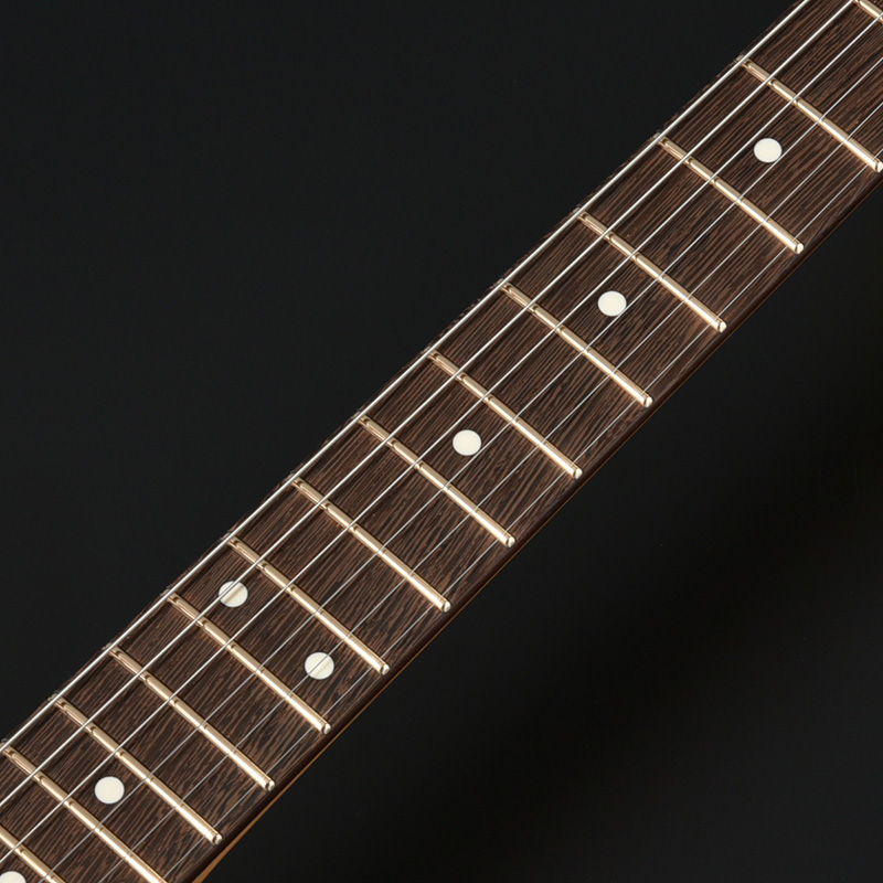 暗い褐色の木肌に現れる黒い縞模様が美しいウェンジを指板材に採用。 優れた硬度と強度を持ち、アタック感が早くタイトなサウンドを生み出します。薄くゴールドに発色するフレットJescarR Evolution Goldと組み合わされることでトーンの粒立ちの良さに貢献し、奏者のニュアンスを的確に表現します。