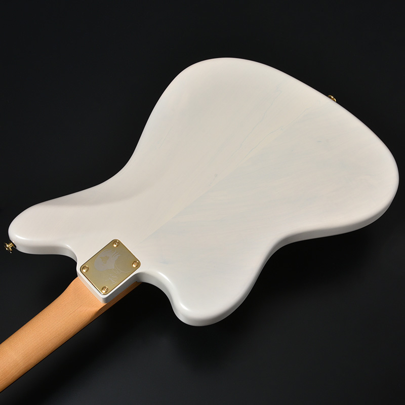 Kazuki Isogaiがビンテージを含む多数のJMを試奏してきた中で、最も現場で使えるサウンドとして結論づけたのがこのMomoseの栃ボディ。シグネチャーモデル開発前より栃ボディのMomose MJMモデルを数々の現場やレコーディングなどで使用しており、エンジニアや共演アーティストたちからのお墨付きをもらったそのトーンをブラッシュアップさせるため、シグネチャーモデルのボディにも栃材の採用を決めました。