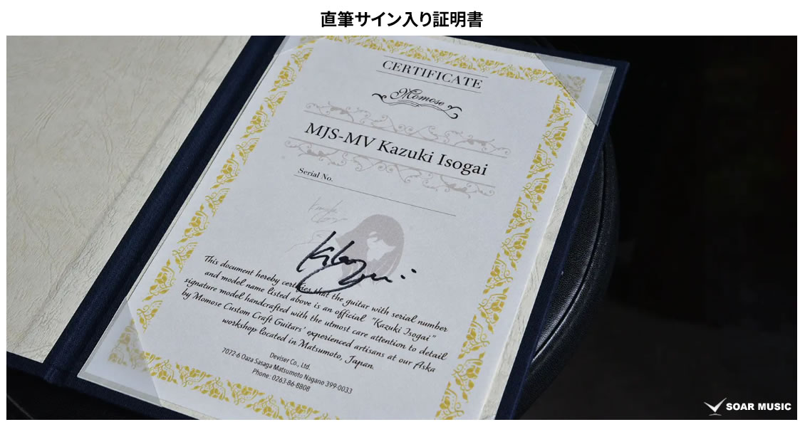 その名の通り「現代の名プレーヤー」に届けるギターを開発することを志し、機能性を追求した仕様や上級グレードのコンポーネントを採用して製作されるMomose Custom Craft Guitarsのフラッグシップライン。磯貝一樹の求める様々なこだわりを形にするため、最上位ラインであるModern Virtuoso SeriesにおいてMJS-MV Kazuki Isogaiは開発されました。
