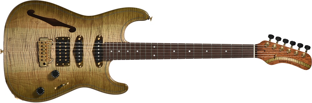 木材の持つ暖かみや個性が際立つピックガードレスのルックスや、ホロウボディと25インチスケールの組み合わせから生み出される独特の演奏性とトーンによってギタリストの皆様から大きな指示を集める人気モデルRosetta Vesselから派生したシングルカッタウェイモデルが誕生!