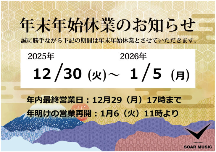 年末年始の営業につきまして