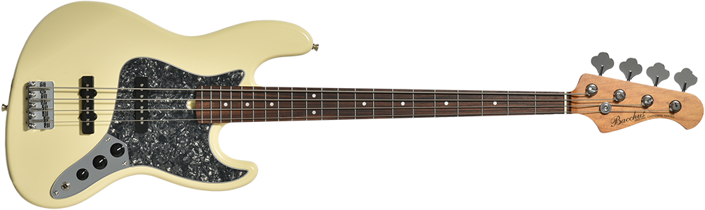Bacchus エントリークラスのスタンダードなジャズベースタイプ BJB-1-RSM のブラックパールピックガード、ローズウッド指板を採用したバージョン。スポット製作の特別仕様です。