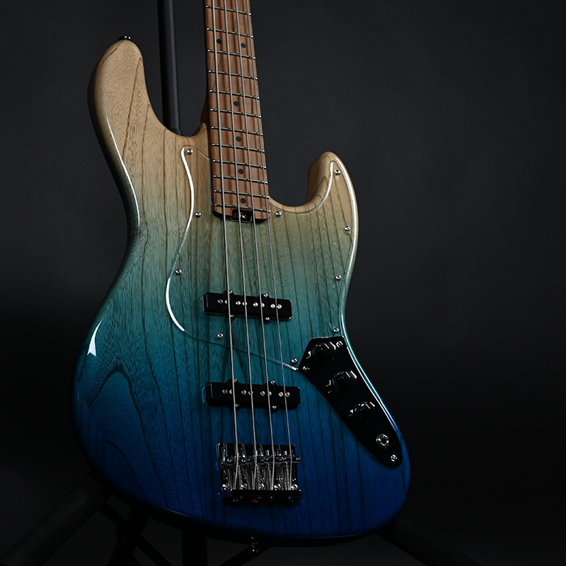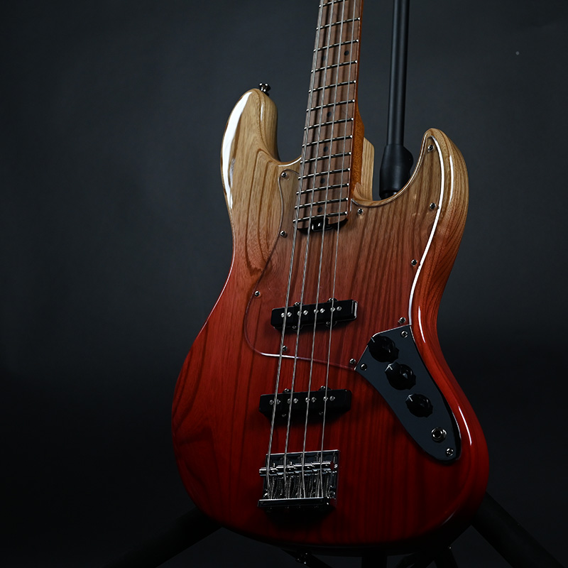 型名に含まれる「ASH」の名の通り、ボディにアッシュ材を用いたモデルです。アッシュは古くからギターやベースの定番材として採用されてきた木材で、はっきりと表れた木目を特徴とします。