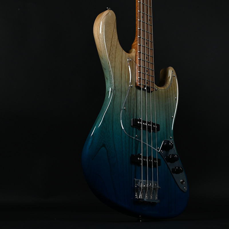“WL”モデルのボディは上位機種「WOODLINE」の洗練されたシェイプを踏襲。一般のJBタイプのベースと比較してスリムな形状を採用しています。これにより演奏時のフィット感が向上し、長時間のプレイでも快適な操作性を実現しています。