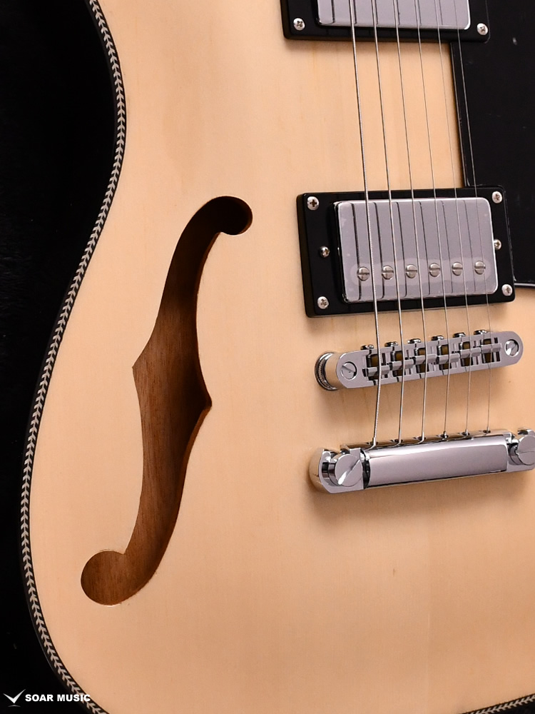 Fホールを配したセミホロウ構造により、アコースティックな印象を前面に打ち出した”JAZZ”モデル。トップ材のスプルースはアコースティックギターをはじめ、ヴァイオリンなどのボディにも使用される木材です。柔らかな木質が特徴で、豊かな生鳴りに貢献します。