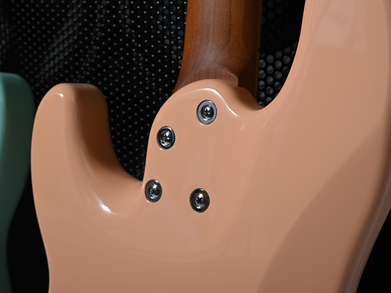 エントリークラスのモデルには珍しいヒールレスカットを採用することで、ハイフレットの演奏時もスムーズなフィンガリングを可能に。ブッシュボルト部分にわずかに施したコンター加工がプレイアビリティを高めます。