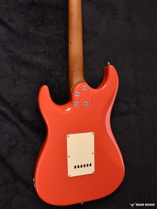 ローステッドメイプルとはメイプルを高温で加熱処理して材の中の水分や油分を揮発させることにより木材を経年変化した状態に人工的に近づけた材のことです。経年変化が進んだ材は歪みやねじれが生じにくくなります。ネックに使用されるとその効果は安定性だけでなくサウンドにも及び、豊かな生鳴りと経年変化したビンテージのようなこなれたトーンを生み出します。一般的に高級機種などで用いられる材ですが、手に取りやすい価格帯に落とし込むことに成功しました。