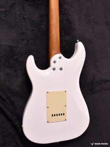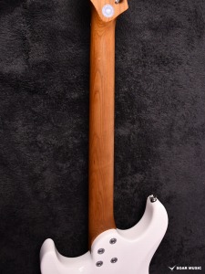 ローステッドメイプルとはメイプルを高温で加熱処理して材の中の水分や油分を揮発させることにより木材を経年変化した状態に人工的に近づけた材のことです。経年変化が進んだ材は歪みやねじれが生じにくくなります。ネックに使用されるとその効果は安定性だけでなくサウンドにも及び、豊かな生鳴りと経年変化したビンテージのようなこなれたトーンを生み出します。一般的に高級機種などで用いられる材ですが、手に取りやすい価格帯に落とし込むことに成功しました。