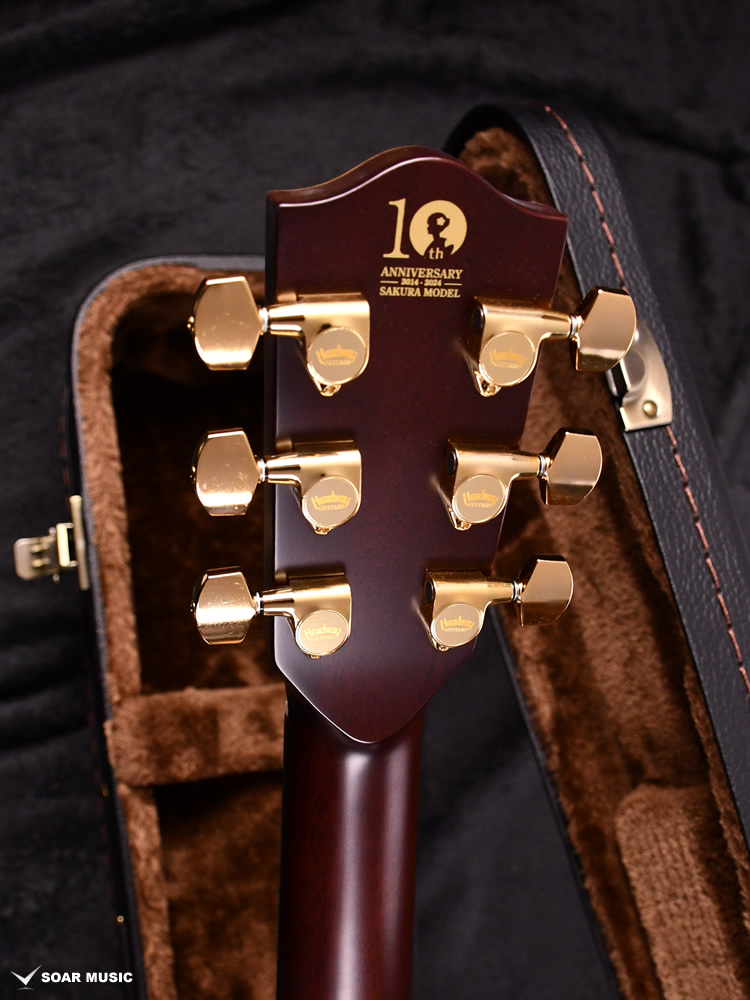 多くのユーザーの皆様に支えられて10周年を迎えた桜ギターへの思いを込めて、ヘッドには縁起を担ぐ存在である「鶴」のインレイをデザインしました。鶴は渡り鳥であるという側面も併せ持っており、日本のみならず、国境を越えて世界中で愛されるギターになって欲しいという願いが込められています。