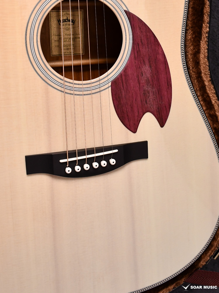 Headwayマスタービルダーの百瀬恭夫が1934年製のビンテージギターのブレーシングを研究し、独自に発展させたブレーシングを継承。Xのクロス位置がサウンドホールに近いセミフォワードシフトで新品時より低音の反応がよく、ボリュームのある鳴りを持ちます。フォワードシフトよりも5mmほどブリッジ寄りになっていることにより、トップ板の安定性も考慮された設計が行われています。