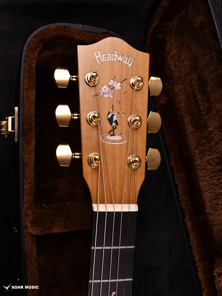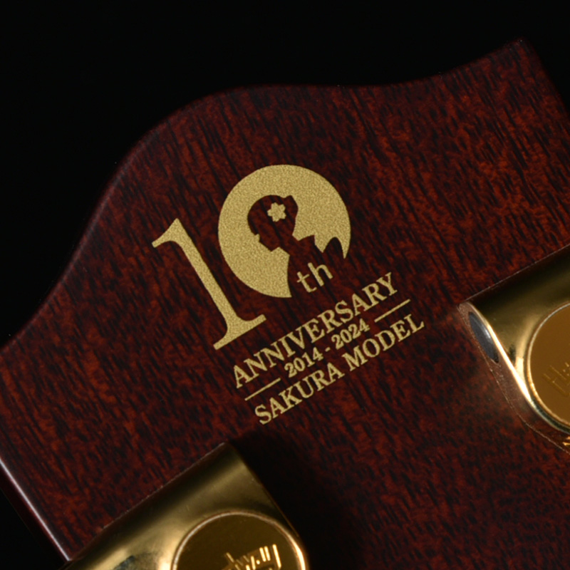 多くのユーザーの皆様に支えられて10周年を迎えた桜ギターへの思いを込めて、ヘッドには縁起を担ぐ存在である「鶴」のインレイをデザインしました。鶴は渡り鳥であるという側面も併せ持っており、日本のみならず、国境を越えて世界中で愛されるギターになって欲しいという願いが込められています。