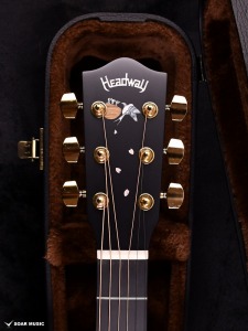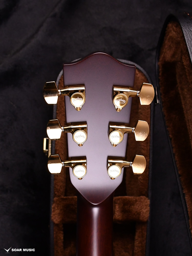 Headwayマスタービルダーの百瀬恭夫が1934年製のビンテージギターのブレーシングを研究し、独自に発展させたブレーシングを継承。Xのクロス位置がサウンドホールに近いセミフォワードシフトで新品時より低音の反応がよく、ボリュームのある鳴りを持ちます。フォワードシフトよりも5mmほどブリッジ寄りなっていることにより、トップ板の安定性も考慮された設計が行われています。