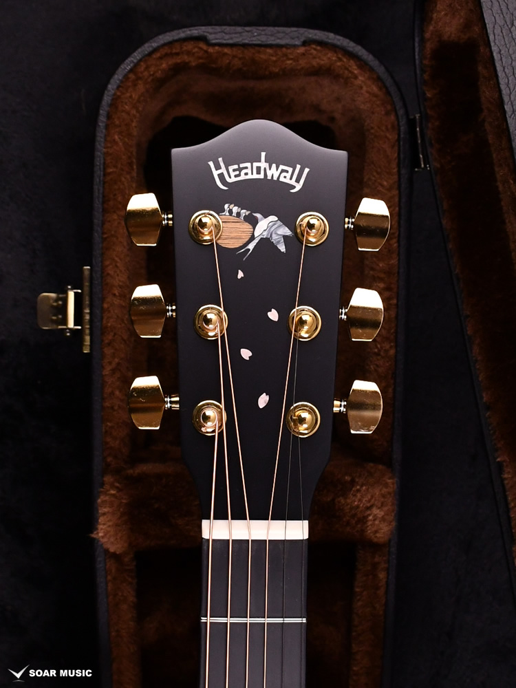 春の渡り鳥として日本人にとってなじみの深いツバメをデザインのモチーフに選びました。Headwayともゆかりのある鳥であり、マスタービルダーの故・百瀬恭夫は毎年春になると工房にやってくるツバメを楽しみにしていました。師への想いと、日本の奥ゆかしい風景に焦点を当てたデザインにより、ギター全体を通してストーリーを感じさせる一本です。