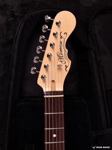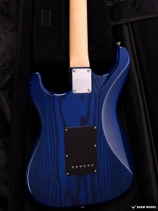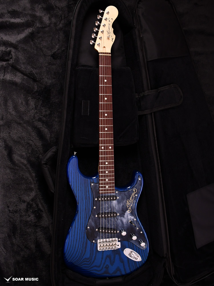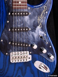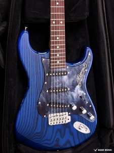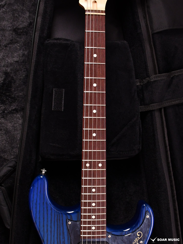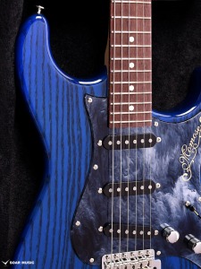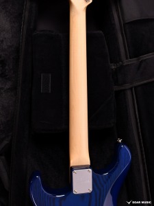 極薄のトップラッカー仕上げにより、ボディの鳴りを最大限に活かし、さらに視覚的にも杢目を際立たせるシースルーブルーを採用。ブルーブラックの深みのあるピックガードとの組み合わせが、唯一無二の存在感を放ちます。