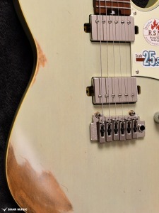 ピックアップにはハムバッカータイプを二基搭載。低音に寄った丸くパワフルなサウンドが特徴的で、クリーンでも存在感あるサウンドが期待できます。また、ハムバッカーはノイズに強い構造をしているため、ディストーションの効いたヘヴィな歪みとの相性も抜群。ジャンルを選ばず活躍できる仕様になっています。