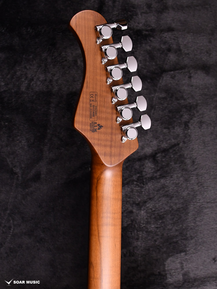 ローステッドメイプルとはメイプルを高温で加熱処理して材の中の水分や油分を揮発させることにより木材を経年変化した状態に人工的に近づけた材のことです。経年劣化が進んだ材は歪みやねじれが生じにくくなります。ネックに使用されるとその効果は安定性だけでなくサウンドにも及び、豊かな生鳴りと経年変化したビンテージのようなこなれたトーンを生み出します。一般的に高級機種などで用いられる材ですが、手に取りやすい価格帯に落とし込むことに成功しました。