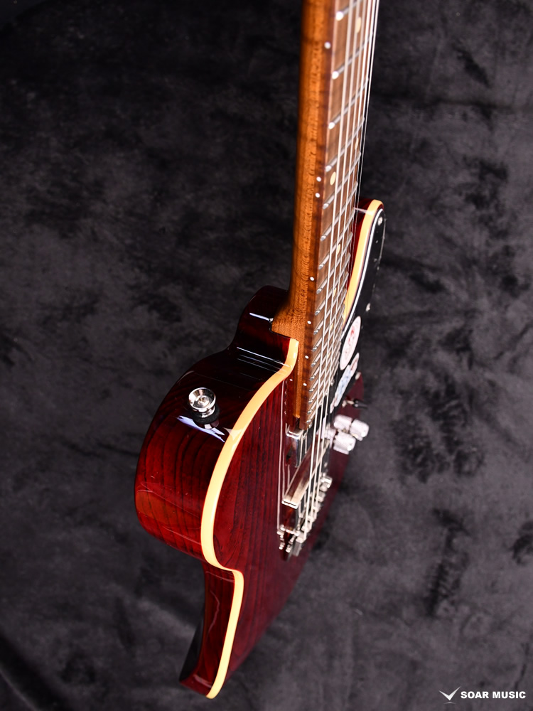 ネックとボディの接合部(ヒール)を削り込むヒールカット加工を施しました。 ジョイントプレートを廃し、ハイフレットを演奏する際に手にフィットし、違和感を感じさせない自然な形状となっています。