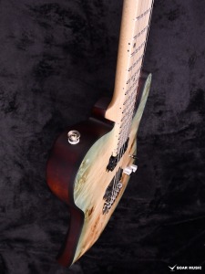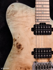 ボディトップを飾るのはバール杢の出ているポプラ材。ポプラは主に北米に分布する木ですが、北海道のポプラ並木など日本でも馴染みのある木材です。