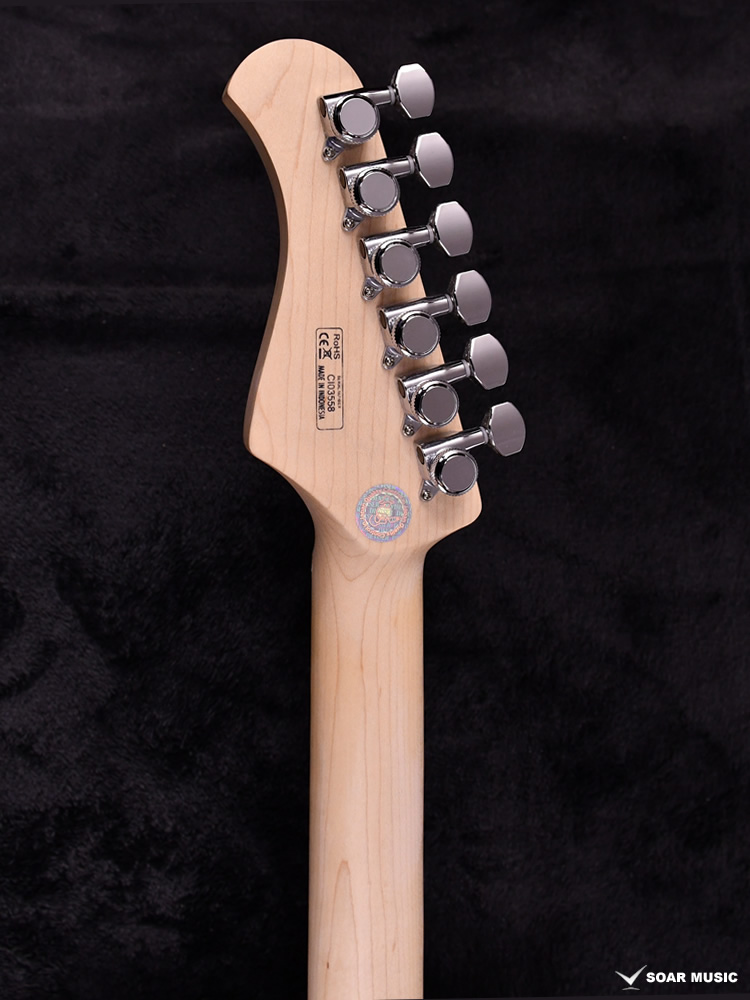 ミニスイッチを切り替えることにより、疑似的にシングルコイル・トーンを生み出すコイルタップ機能に加え、滑らかなアーミングを可能にするWilkinson®社の2スタッドトレモロを標準搭載。