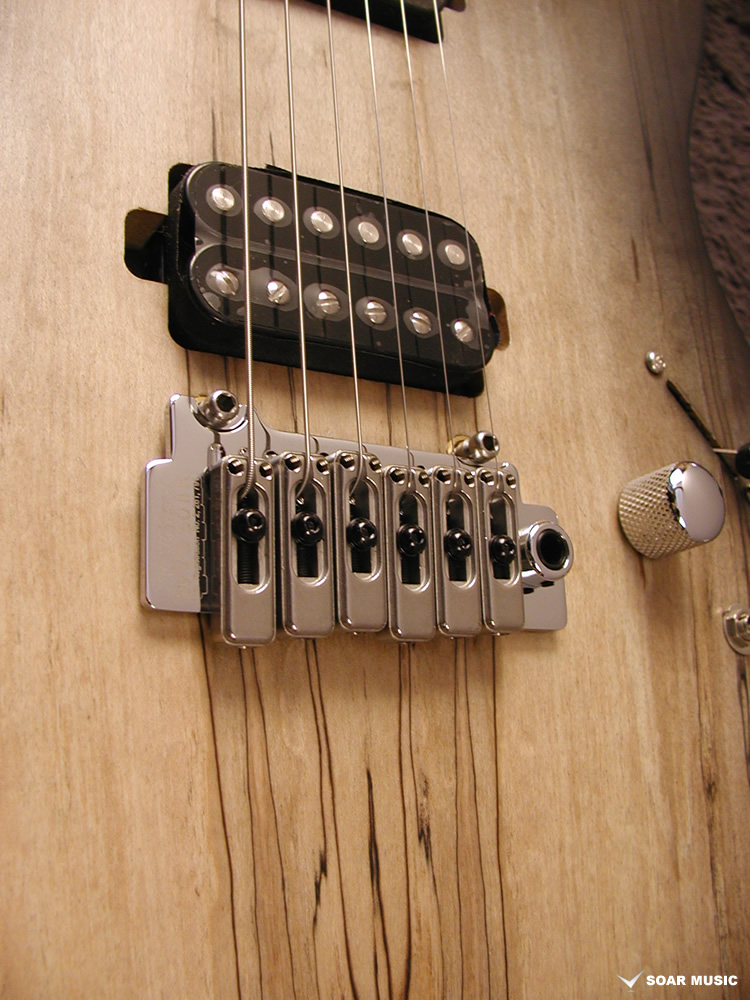 ミニスイッチを切り替えることにより、疑似的にシングルコイル・トーンを生み出すコイルタップ機能に加え、滑らかなアーミングを可能にするWilkinson®社の2スタッドトレモロを標準搭載。