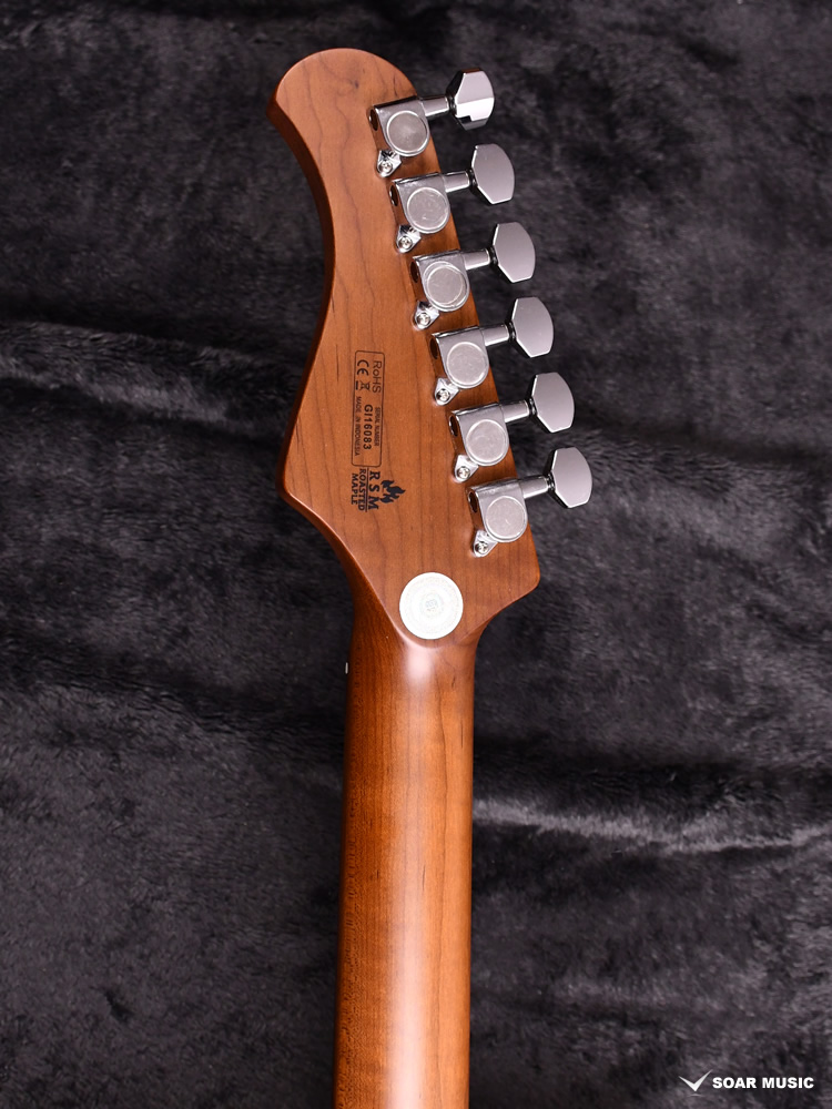 ネックにローステッドメイプルを採用することで、ハイエンドモデルの様な雰囲気を醸し出しています。ネックとしての剛性が高いためトラブルが少なく、また音の立ち上がりが良いカラッとしたビンテージギターのようなトーンを生み出します。(※メイプルの杢目には個体差があります)
