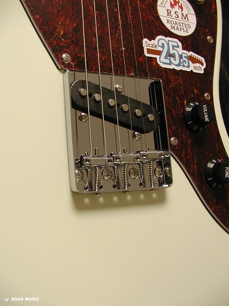 ネックにローステッドメイプルを採用することで、ハイエンドモデルの様な雰囲気を醸し出しています。ネックとしての剛性が高いためトラブルが少なく、また音の立ち上がりが良いカラッとしたビンテージギターのようなトーンを生み出します。