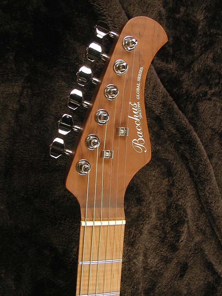 ローステッドメイプルとはメイプルを高温で加熱処理して材の中の水分や油分を揮発させることにより剛性を高めた材。ネックに使用されるとその効果は安定性だけでなくサウンドにも及び、豊かな生鳴りと経年変化したビンテージのようなこなれたトーンを生み出します。高級機種で使われることの多いこの本格派仕様をリーズナブルな価格帯に落とし込んだBacchusの新しい製品ラインナップです。
