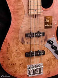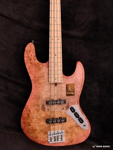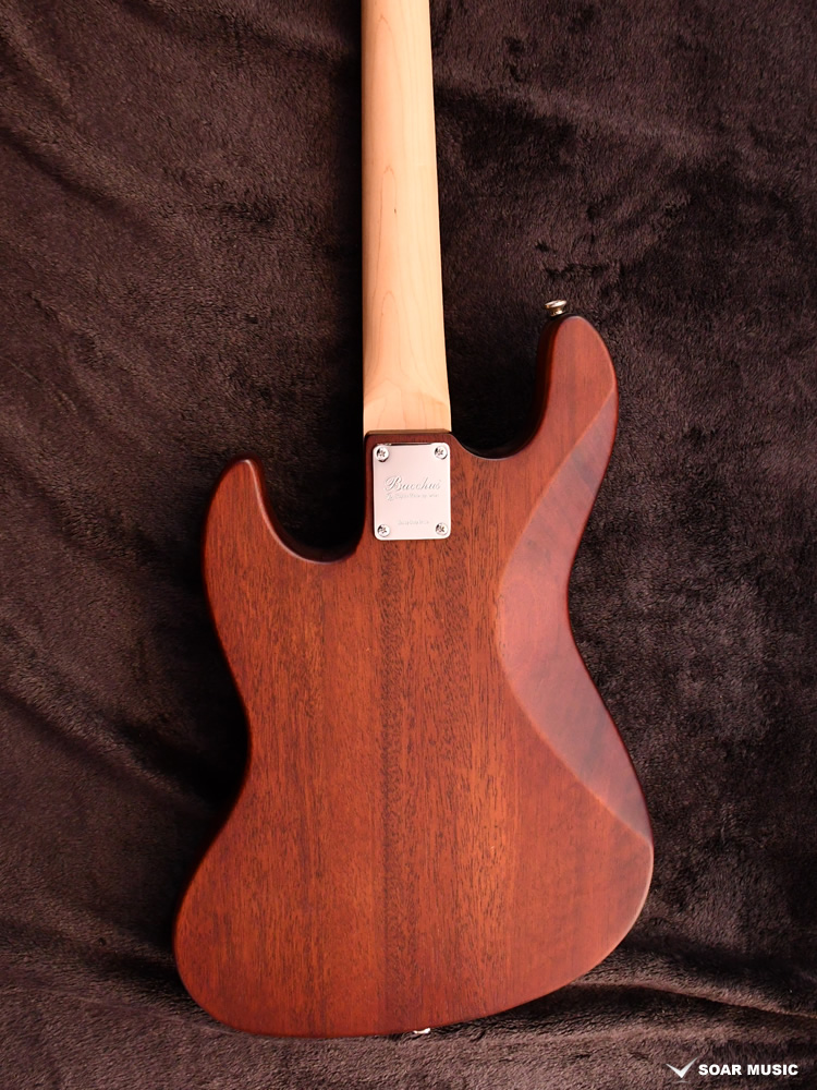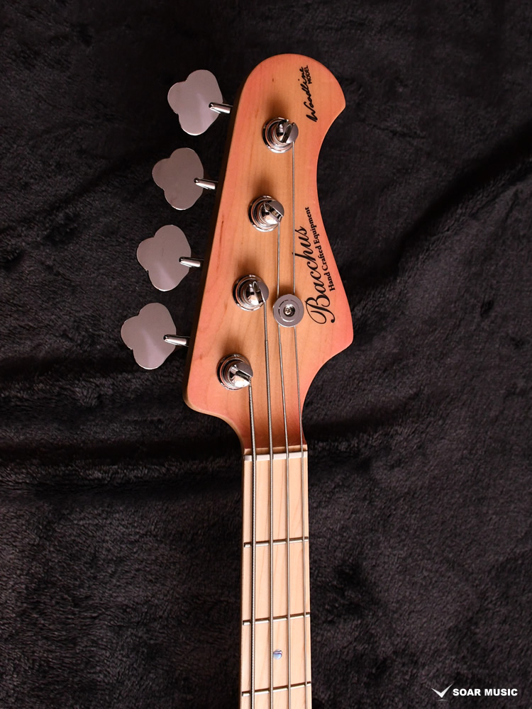本モデルは過去にBacchus Handmade Seriesから限定モデルで登場した、KRB(渓流ブルー)とSYP(ソメイヨシノピンク)のカラーリングを踏襲した淡い色合いで仕上げています。薄い色のバーストは技術を要しますが、国産モデルを製造している飛鳥工場の職人の熟練した塗装技術を再現。メイプルの指板を含めてベース全体の外観を柔らかな雰囲気でまとめました。