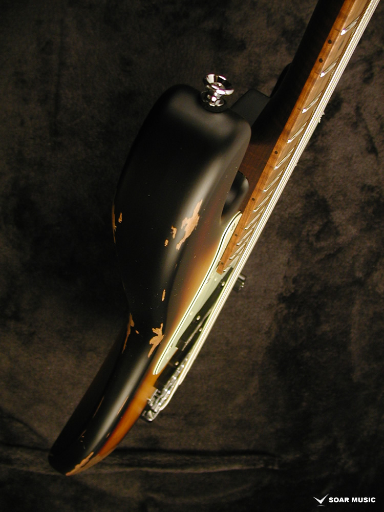 一本一本手作業で行われるボディのエイジド加工により、自然な経年変化を再現しています。一般的なグロスフィニッシュに代わりマットな風合いに仕上げることで、長年引き込んだような風格をその手に感じさせます。