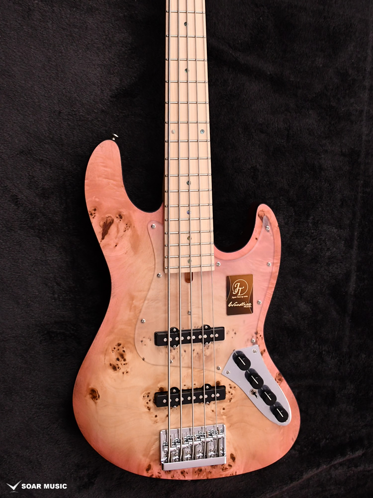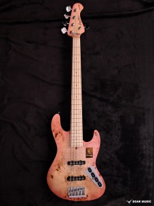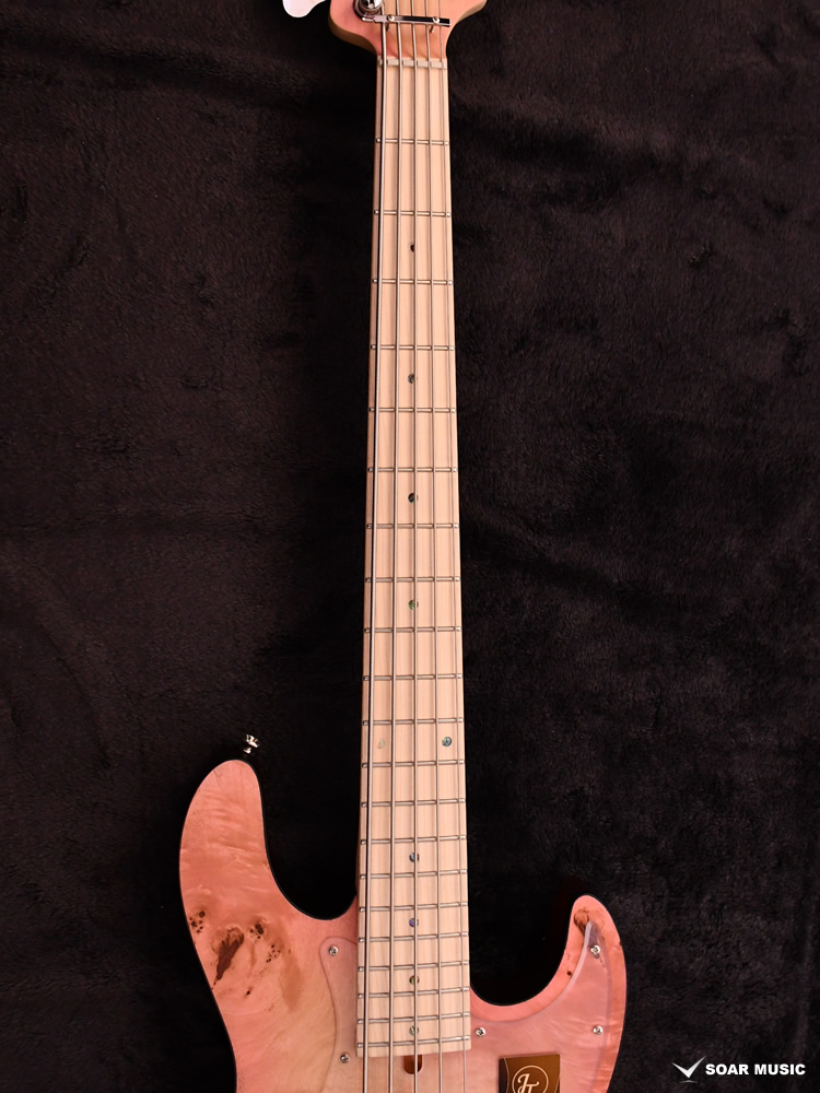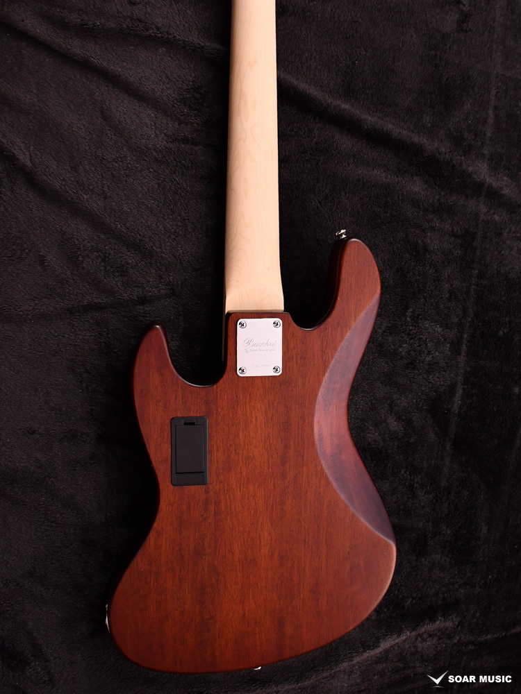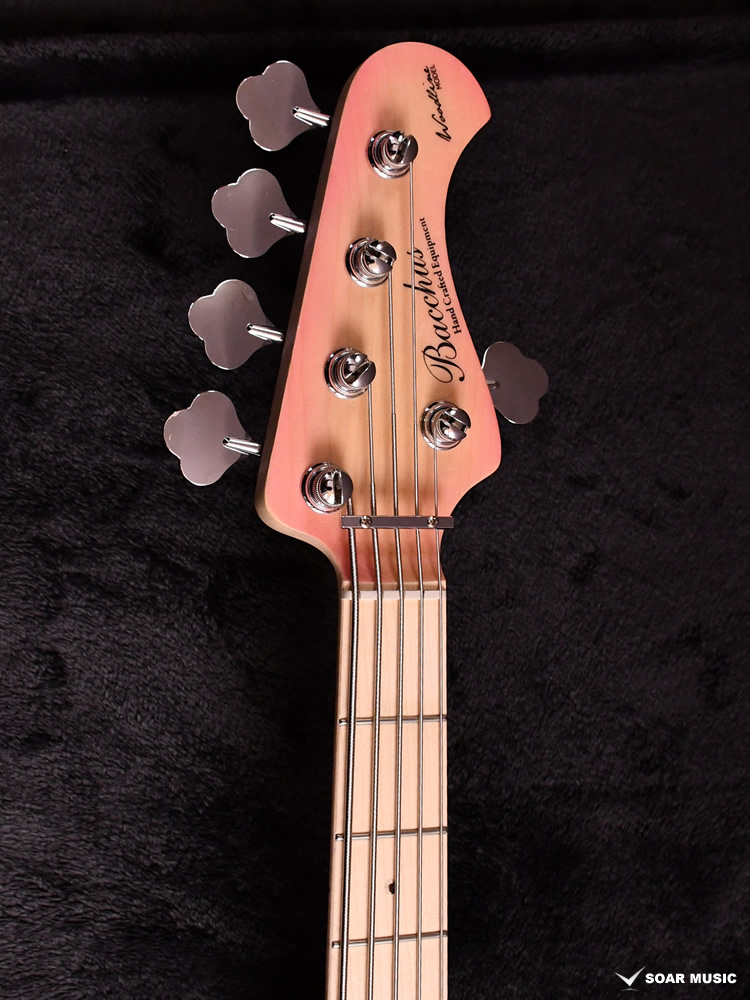 本モデルは過去にBacchus Handmade Seriesから限定モデルで登場した、KRB(渓流ブルー)とSYP(ソメイヨシノピンク)のカラーリングを踏襲した淡い色合いで仕上げています。薄い色のバーストは技術を要しますが、国産モデルを製造している飛鳥工場の職人の熟練した塗装技術を再現。メイプルの指板を含めてベース全体の外観を柔らかな雰囲気でまとめました。