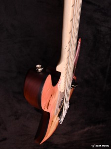 ボディトップを飾るのはバール杢の出ているポプラ材。ポプラは主に北米に分布する木ですが、北海道のポプラ並木など日本でも馴染みのある木材です。