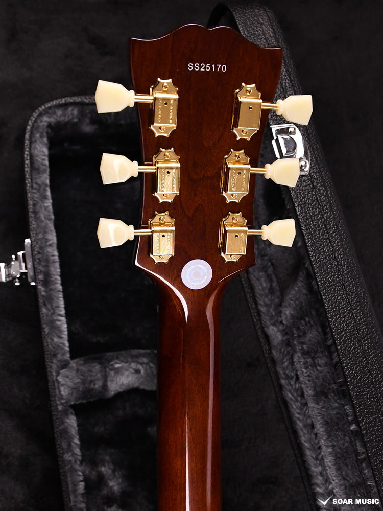 軽量で取り回しの良い小ぶりなチャンバード・セミホロウボディ、反応の良いアタックを生み出すスプルーストップ、ハーフヘリンボーンのパーフリングやスモールドットポジションマークなどの控え目ながらもトラッドな装飾など、これまでの仕様とデザインのベースとなるポイントを踏襲しています。