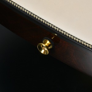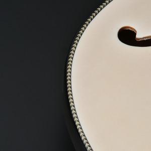 適度な重量を備えたナトーボディより、立ち上がって演奏する際にもバランス感の良さを発揮します。ボディ外周に施されたヘリンボーンスタイルのバインディングと落ち着いた雰囲気のカラーリングが特徴です。