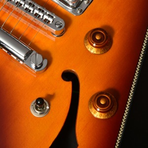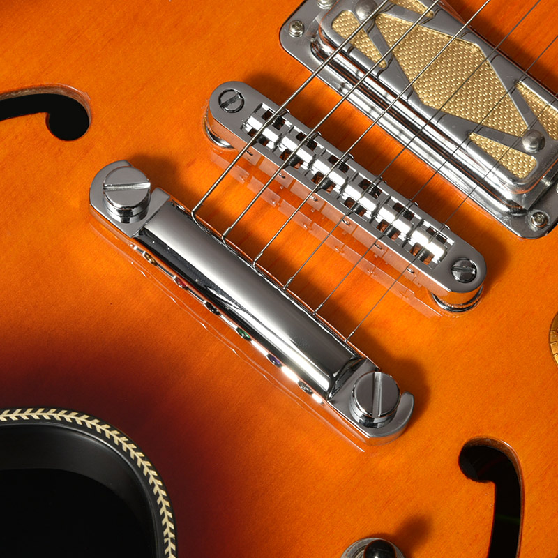 弦振動をよりダイレクトにボディへ伝えることのできるT.O.Mタイプのブリッジを搭載。トレモロユニットがないため弦の張力が安定し、チューニングが狂いにくく、また弦振動がボディにダイレクトに伝わりやすいためサスティーンが得られやすい機構です。ピックアップセレクターには瞬時にポジションの切り替えが可能なトグルスイッチを採用しています。