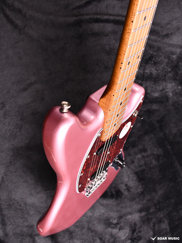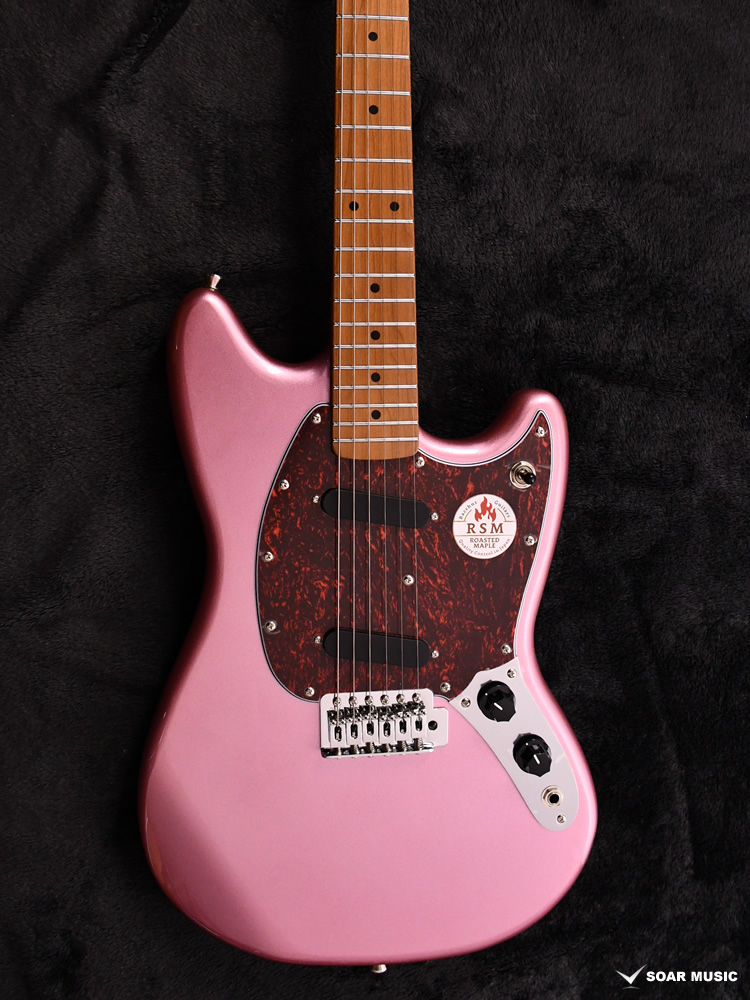 ローステッドメイプルとはメイプルを高温で加熱処理して材の中の水分や油分を揮発させることにより木材を経年変化した状態に人工的に近づけた材のことです。経年変化が進んだ材は歪みやねじれが生じにくくなります。ネックに使用されるとその効果は安定性だけでなくサウンドにも及び、豊かな生鳴りと経年変化したビンテージのようなこなれたトーンを生み出します。一般的に高級機種などで用いられる材ですが、手に取りやすい価格帯に落とし込むことに成功しました。
