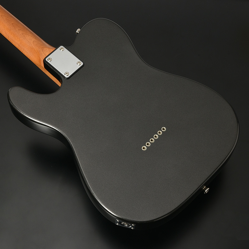 ローステッドメイプルとはメイプルを高温で加熱処理して材の中の水分や油分を揮発させることにより木材を経年変化した状態に人工的に近づけた材のことです。経年変化が進んだ材は歪みやねじれが生じにくくなります。ネックに使用されるとその効果は安定性だけでなくサウンドにも及び、豊かな生鳴りと経年変化したビンテージのようなこなれたトーンを生み出します。一般的に高級機種などで用いられる材ですが、手に取りやすい価格帯に落とし込むことに成功しました。