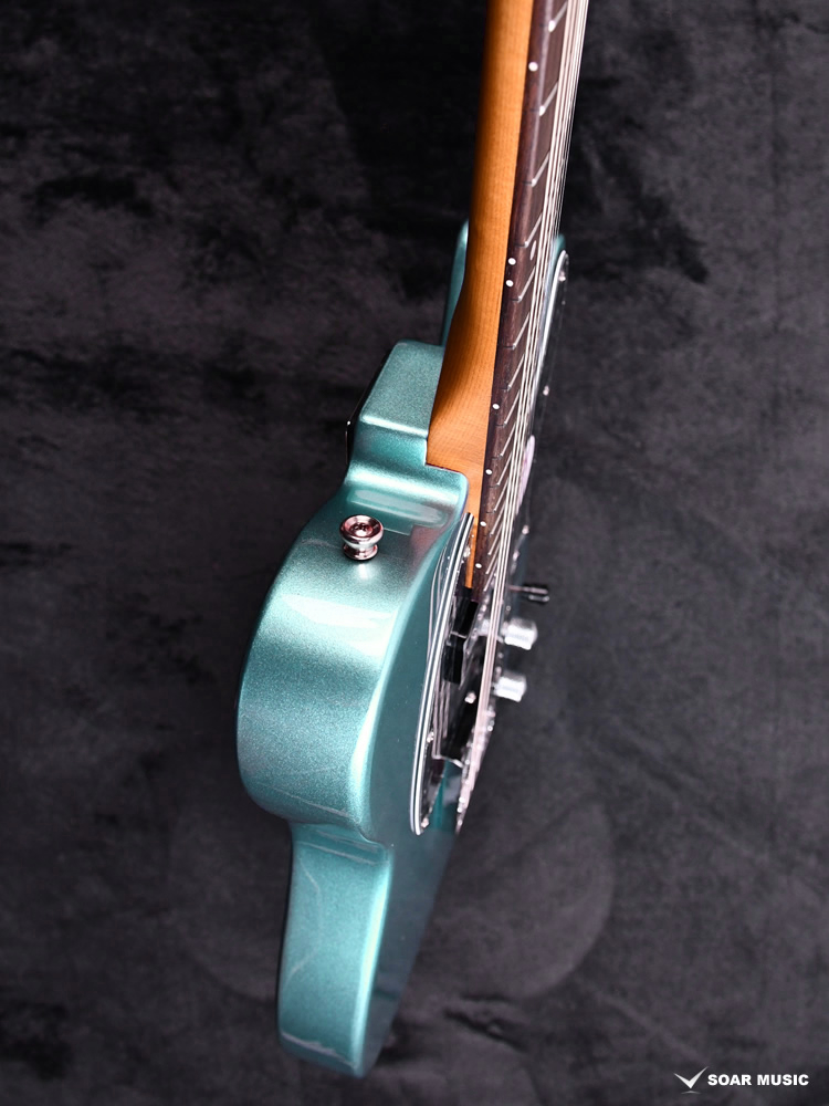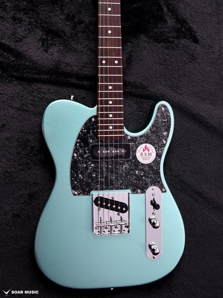 ローステッドメイプルとはメイプルを高温で加熱処理して材の中の水分や油分を揮発させることにより木材を経年変化した状態に人工的に近づけた材のことです。経年変化が進んだ材は歪みやねじれが生じにくくなります。ネックに使用されるとその効果は安定性だけでなくサウンドにも及び、豊かな生鳴りと経年変化したビンテージのようなこなれたトーンを生み出します。一般的に高級機種などで用いられる材ですが、手に取りやすい価格帯に落とし込むことに成功しました。