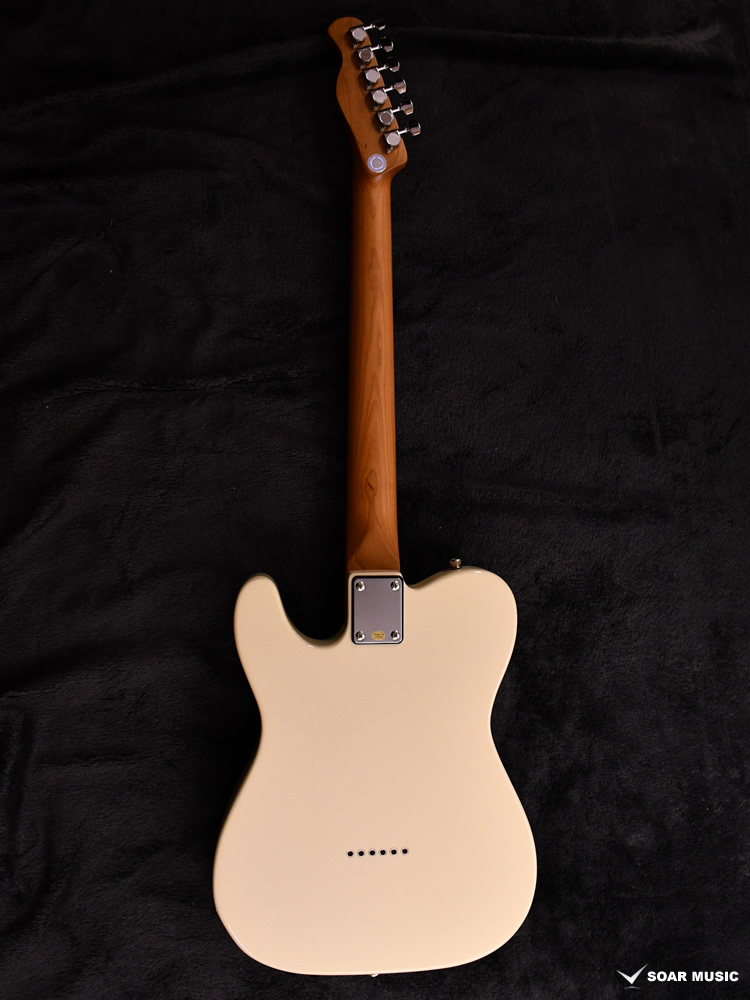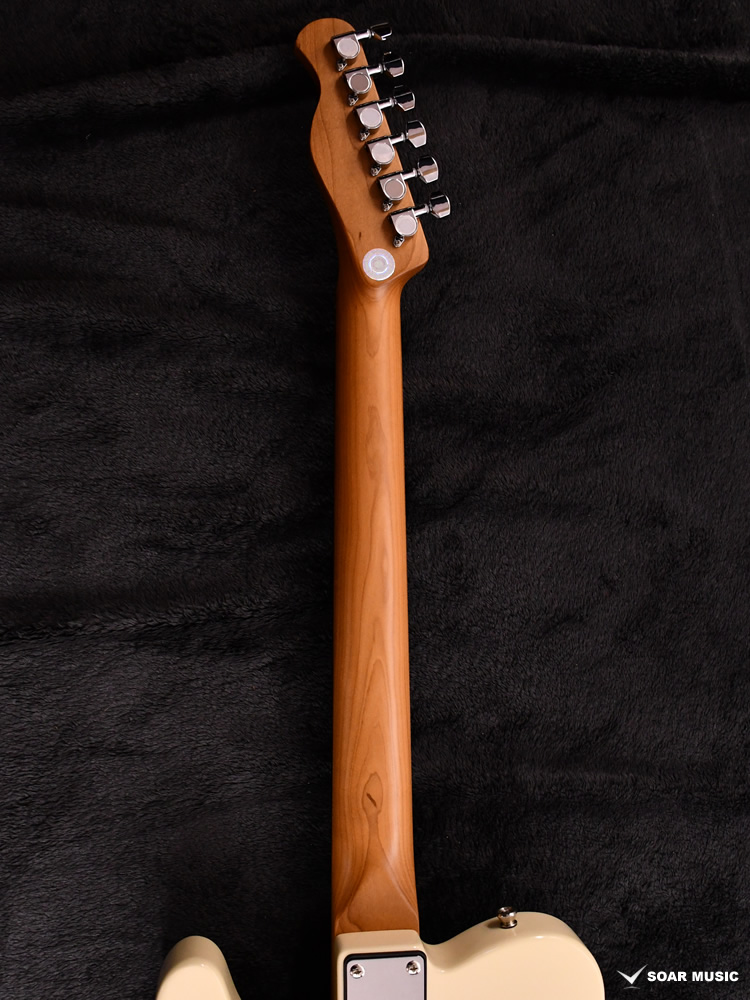 ローステッドメイプルとはメイプルを高温で加熱処理して材の中の水分や油分を揮発させることにより木材を経年変化した状態に人工的に近づけた材のことです。経年変化が進んだ材は歪みやねじれが生じにくくなります。ネックに使用されるとその効果は安定性だけでなくサウンドにも及び、豊かな生鳴りと経年変化したビンテージのようなこなれたトーンを生み出します。一般的に高級機種などで用いられる材ですが、手に取りやすい価格帯に落とし込むことに成功しました。